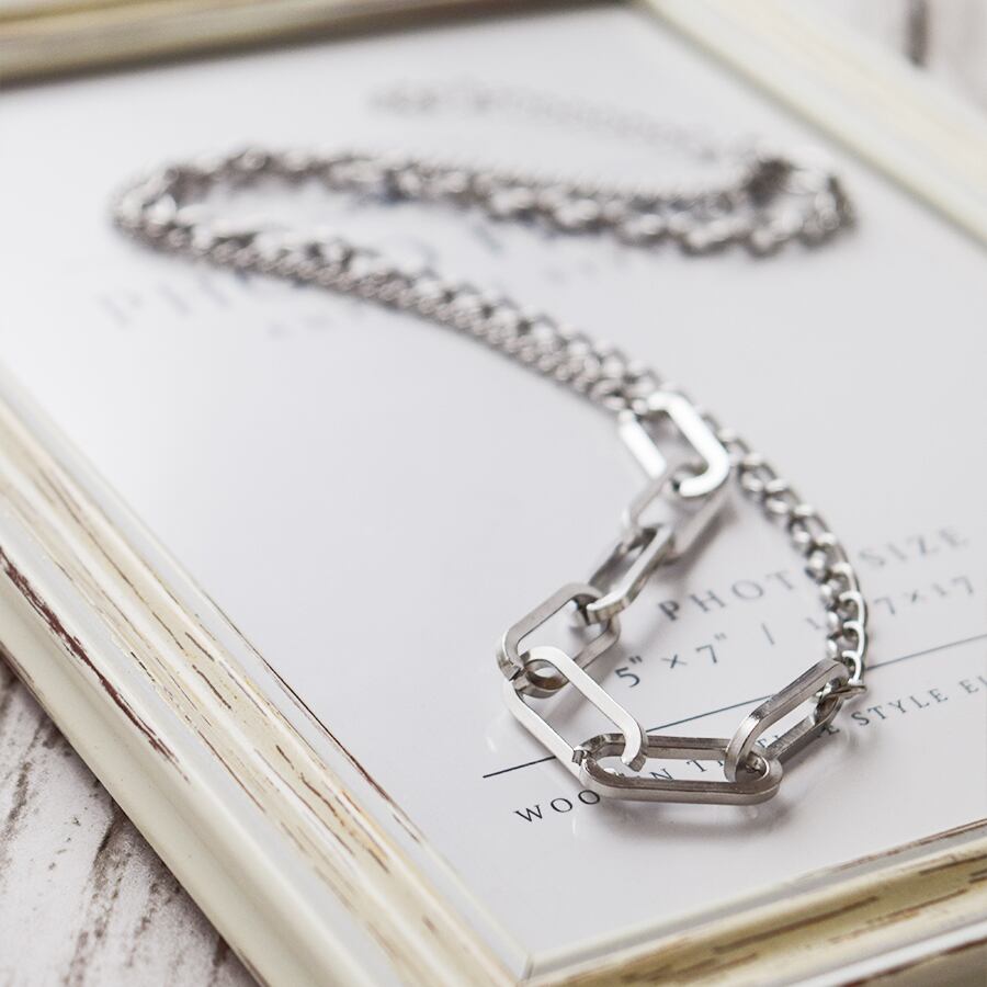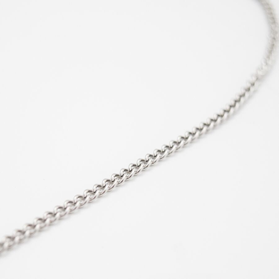 左右で表情が変わる個性的なチェーンはクールな印象も魅せつつ、大人の落ち着きも感じさせるデザイン。