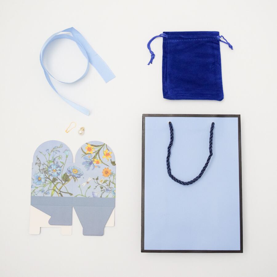 ラッピングセット(スカイブルー花柄BOX・巾着袋付き)包装セット