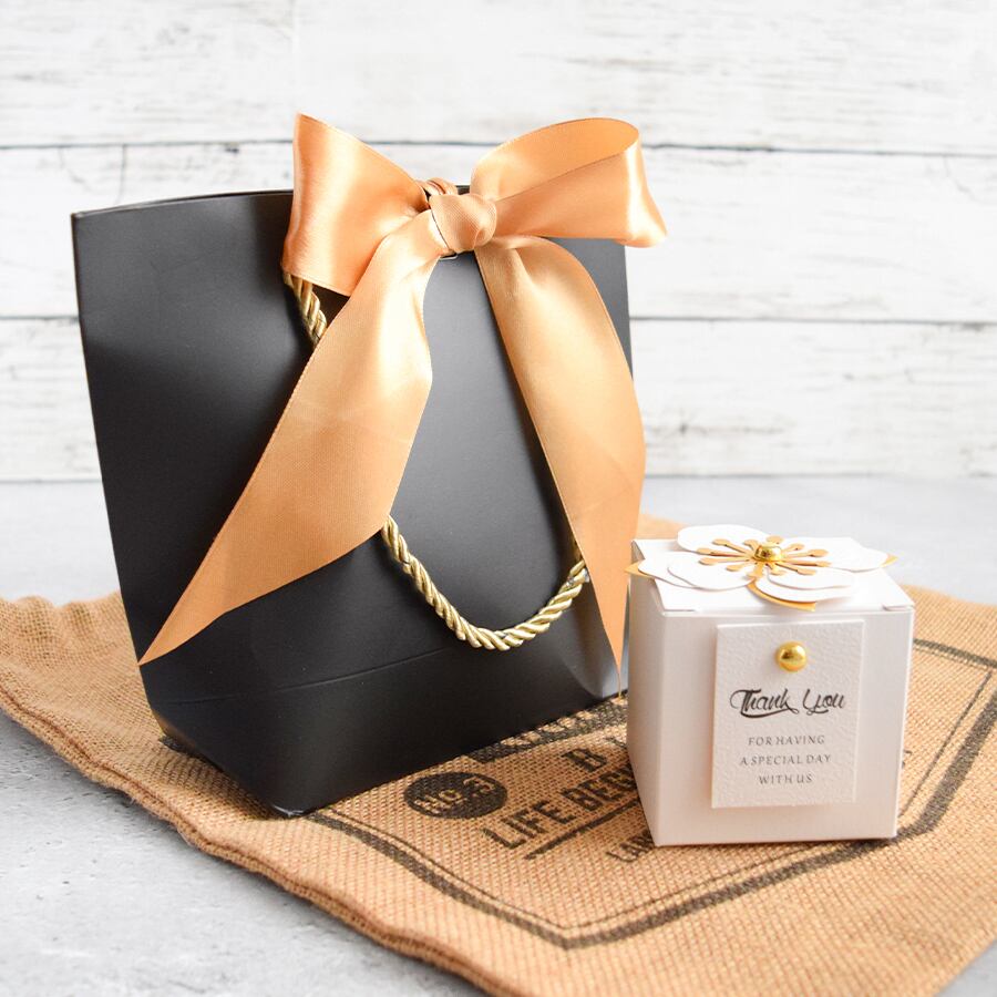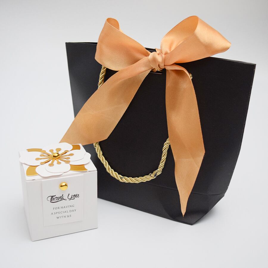 ボックスの白と手提げ袋の黒とのコントラストが大人の雰囲気でシックな簡易ギフトパッケージセット。