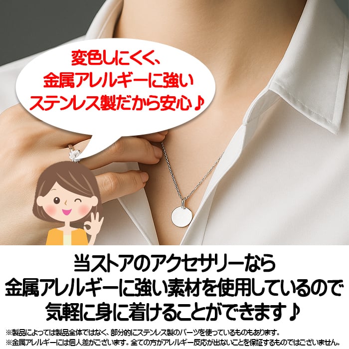 水や汗にも強く、金属アレルギーの方でも比較的安心して使えるお肌に優しいステンレス製です。