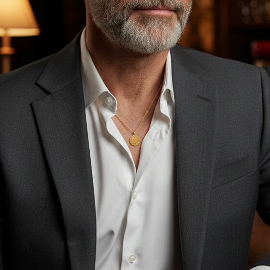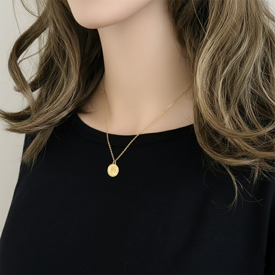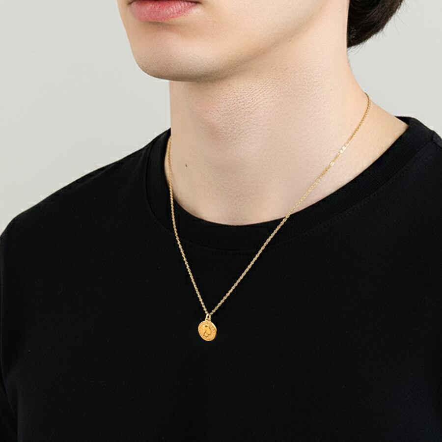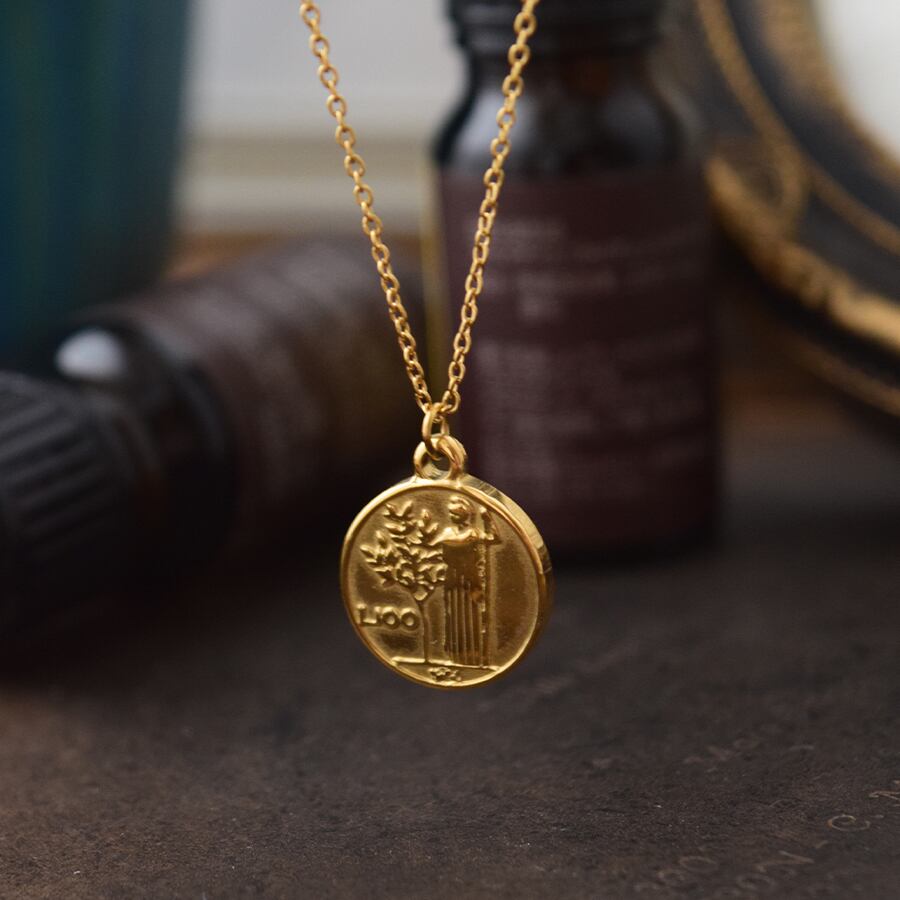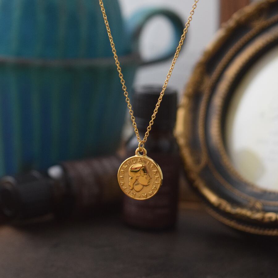 イタリアの100リラコインをモチーフにしたステンレス製のネックレス。