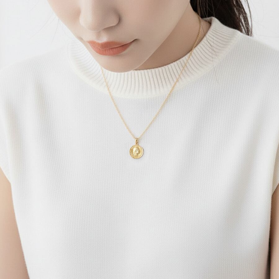 ステンレス製だから夏場の汗ばむシーンでも金属アレルギーになりにくく、コインネックレス事態も変色しにくい性質の素材だからお手入れも気にせず便利♪