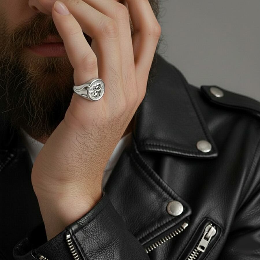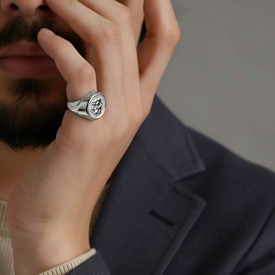 シルバーの贅沢な光沢は、日常の装いをワンランク上へと引き立てます。程よいボリューム感で、性別を問わずユニセックスに楽しめるデザイン。自分へのご褒美にふさわしいリングです。