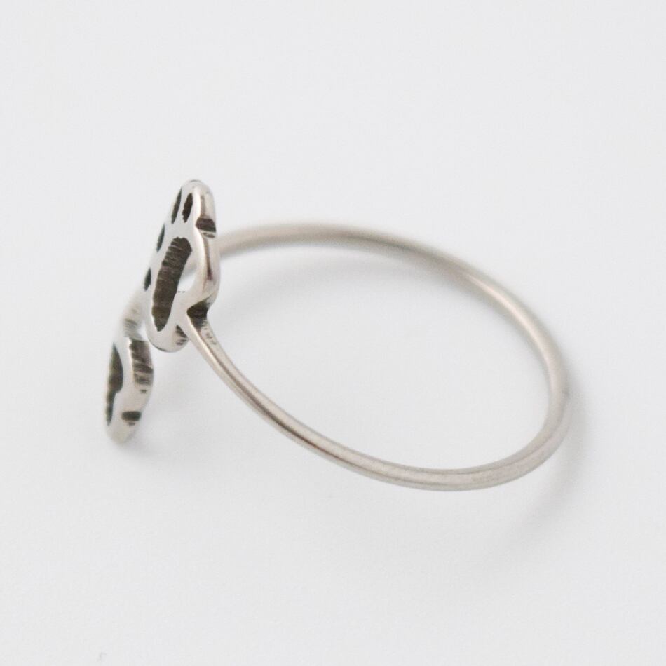 ネコ犬肉球ハートナローステンレスフリーリングSV