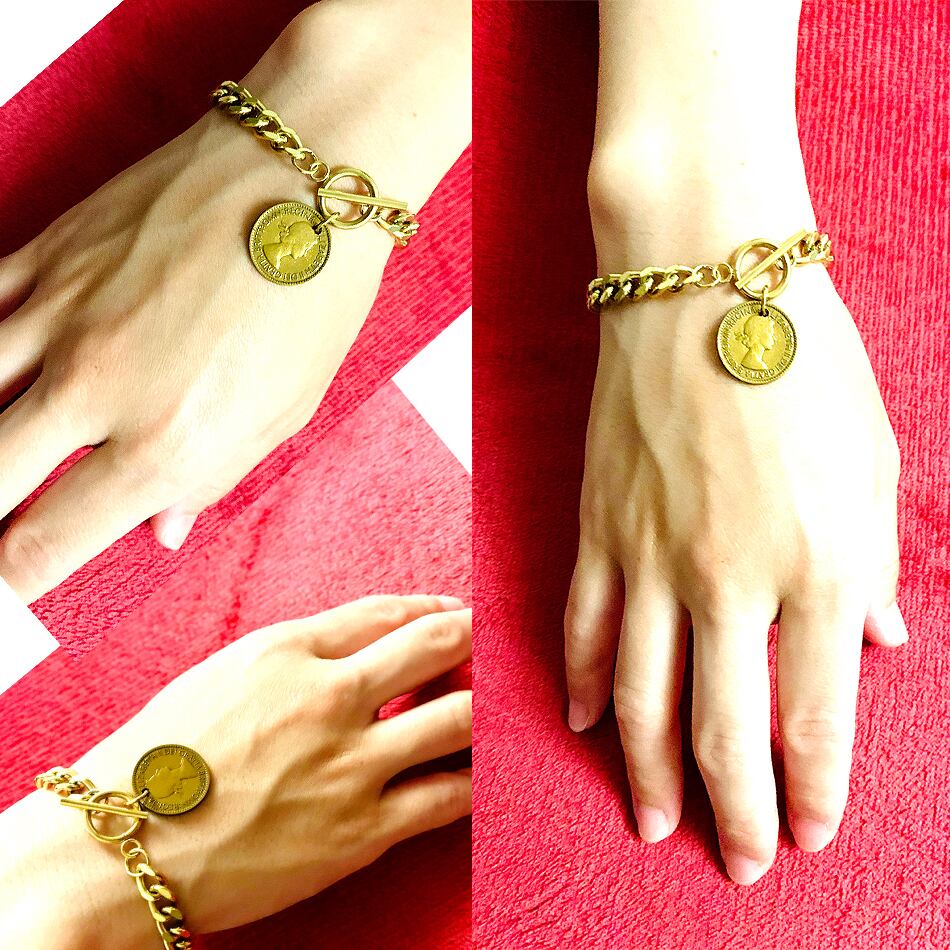 そんな本物の6ペンスコインを使用した、ハンドメイドの6ペンスコインブレスレットです。