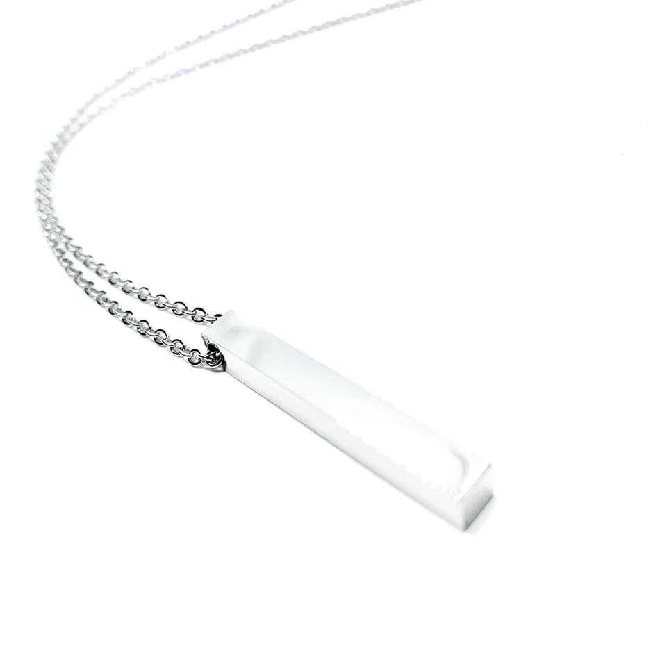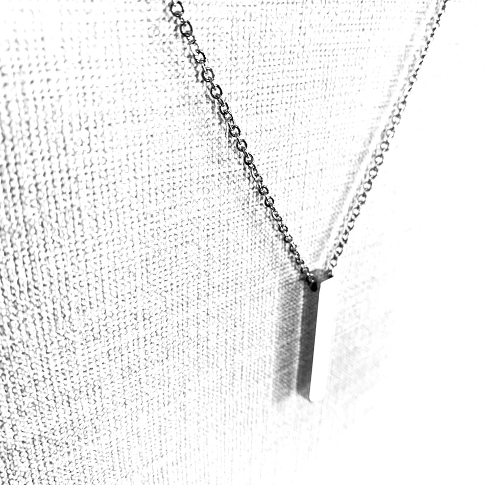見た目にもシンプルなスティック型のネックレス。
