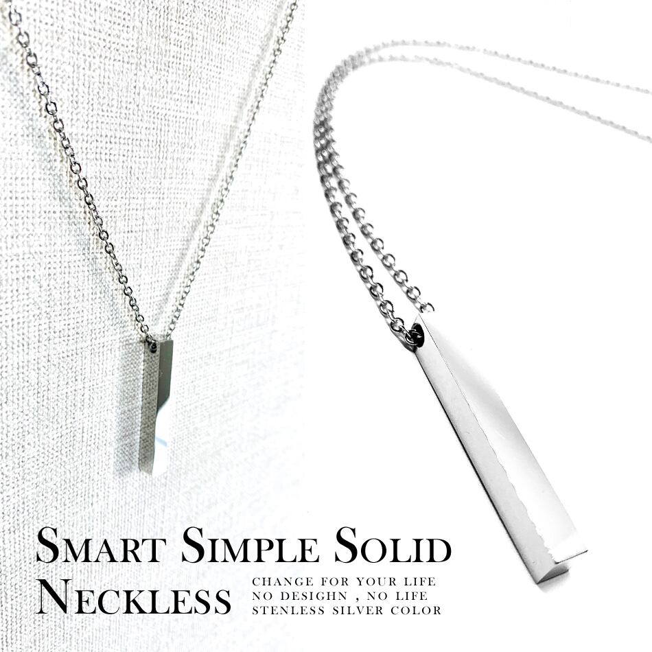 スマートシンプルソリッドネックレス ■ 日本製 送料無料 スティック ネックレス ステンレス製 長方形 直方体 スマート シンプル メンズネックレス 棒 60センチ 1000円ポッキリ