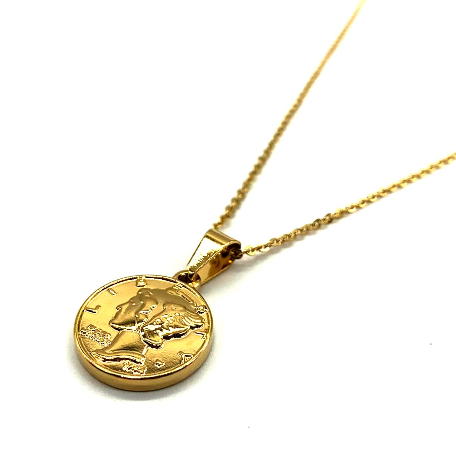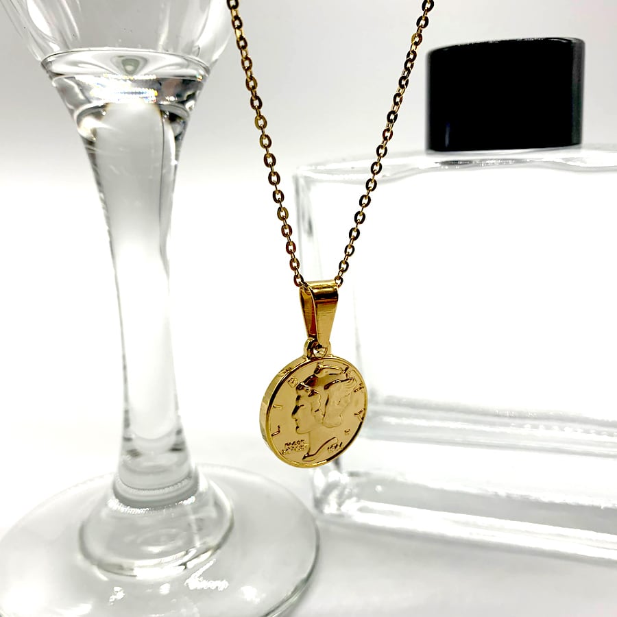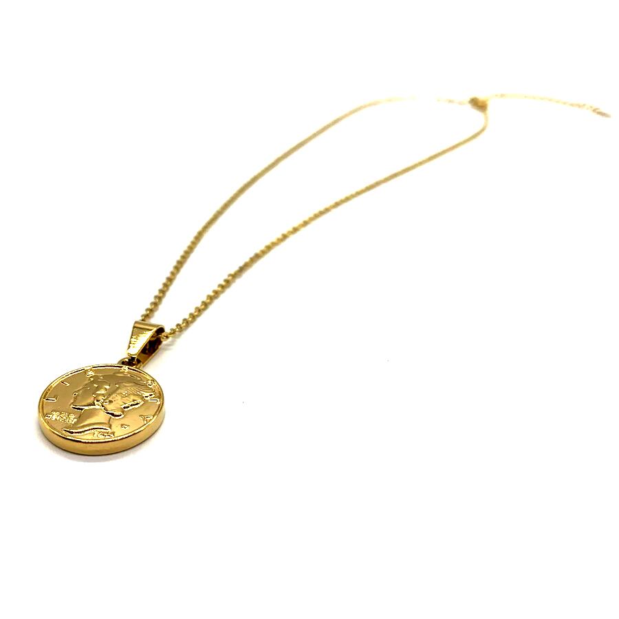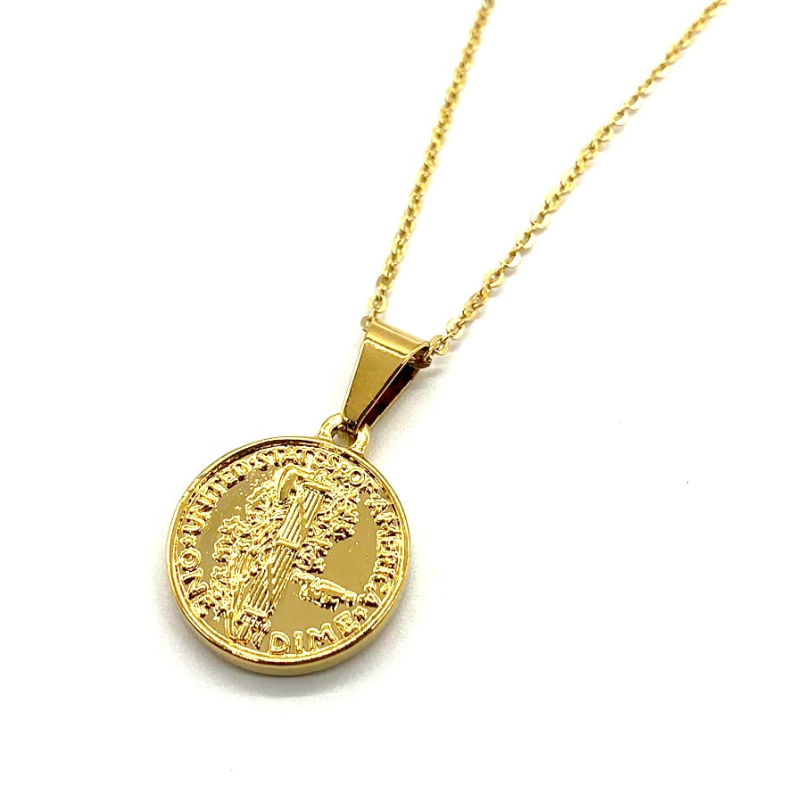 ステンレスマーキュリーダイムリバティコインネックレスゴールド