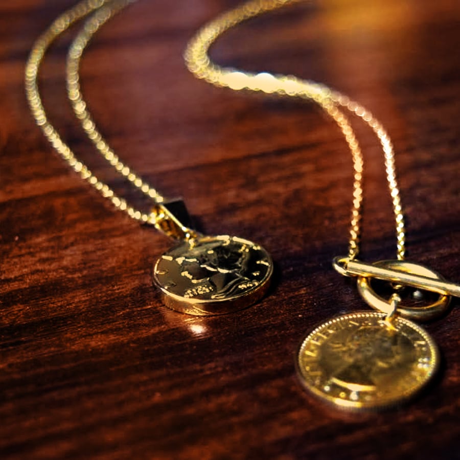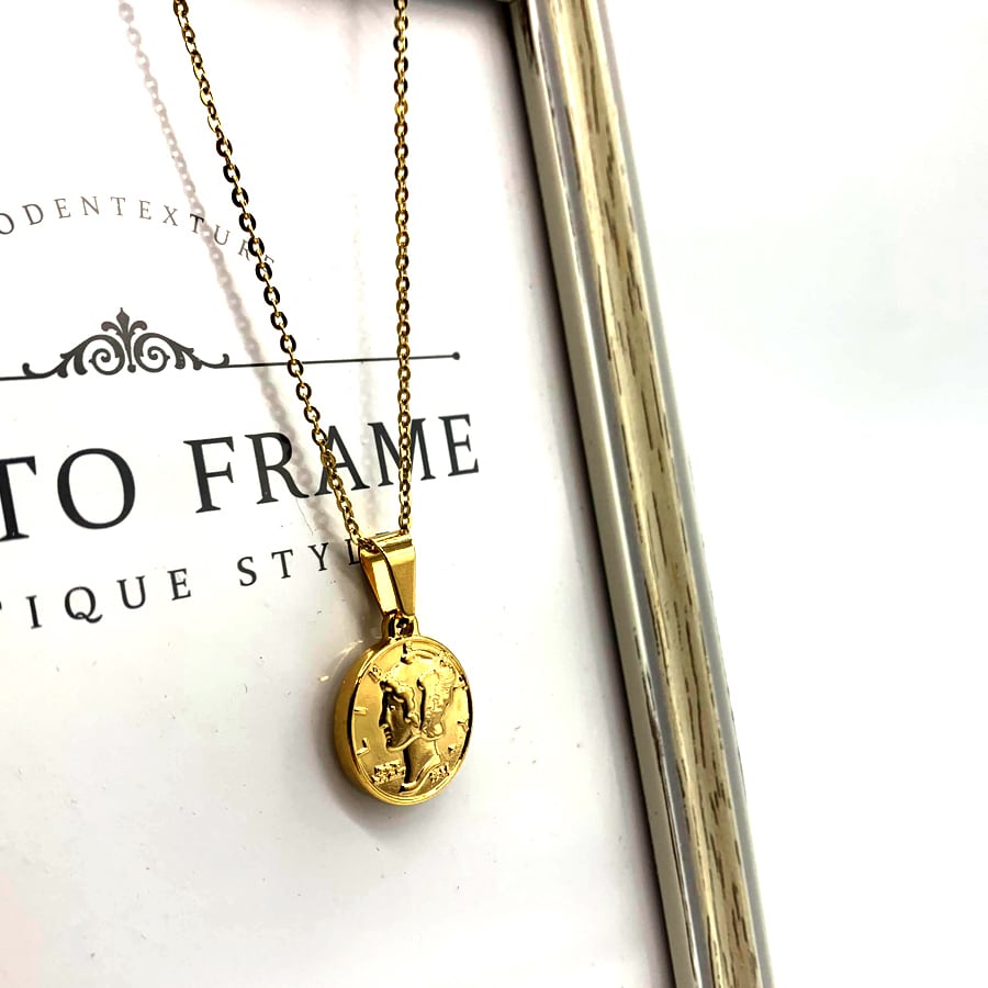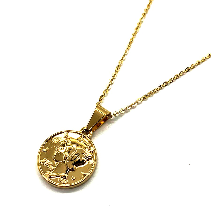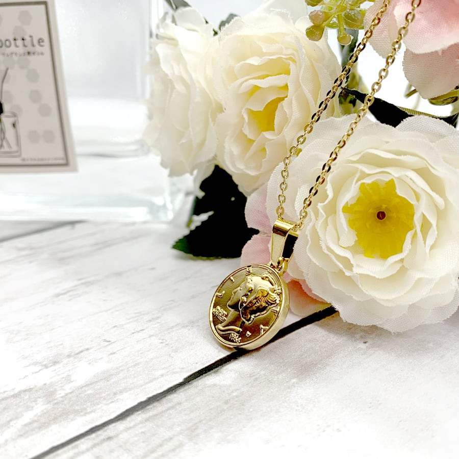 ステンレスマーキュリーダイムリバティコインネックレスゴールド