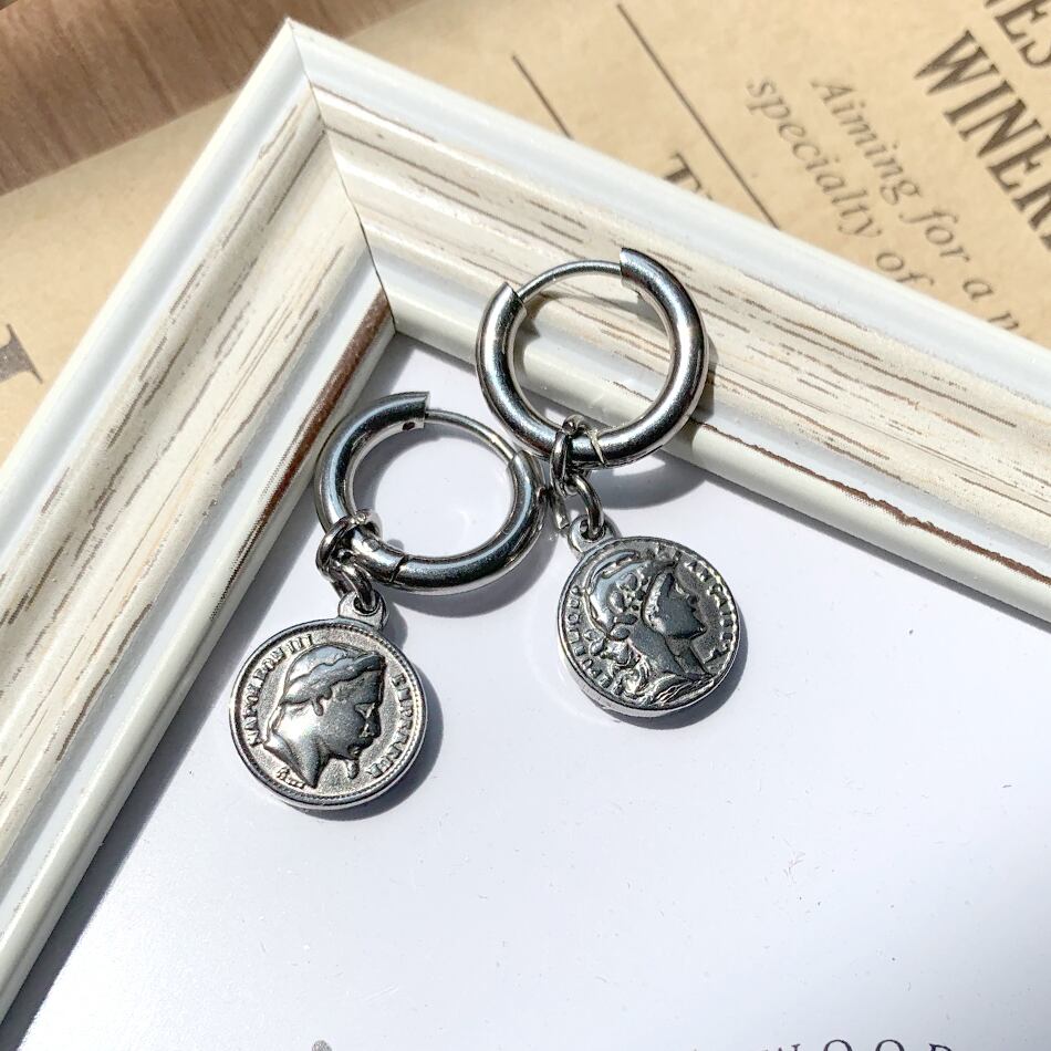 ステンレスリバーシブルコインピアス