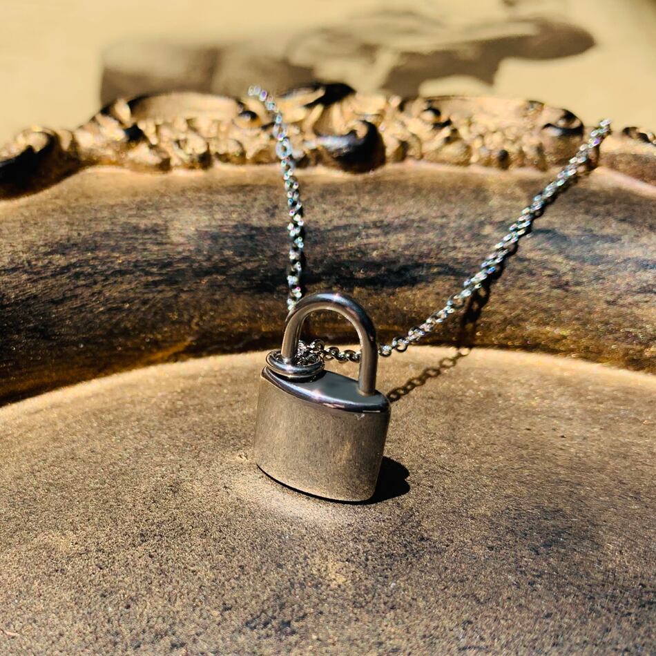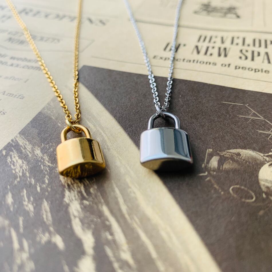 南京錠部分が見た目のインパクトをグッとグレードアップしてくれる、シンプルな南京錠ネックレス。