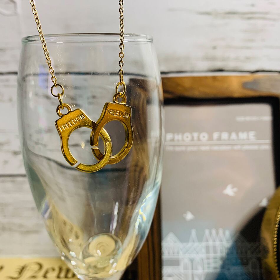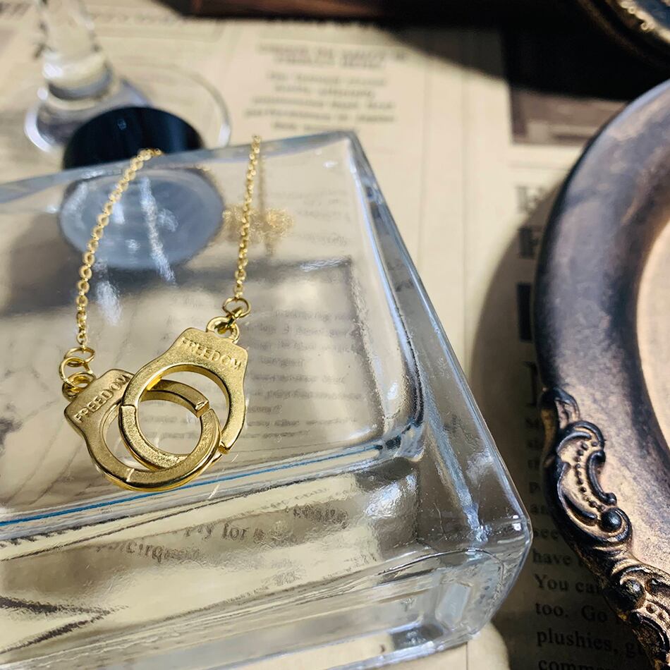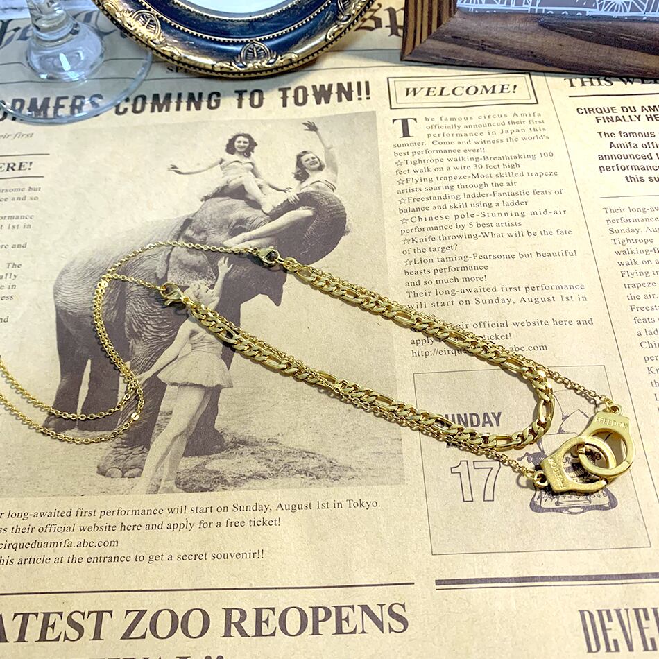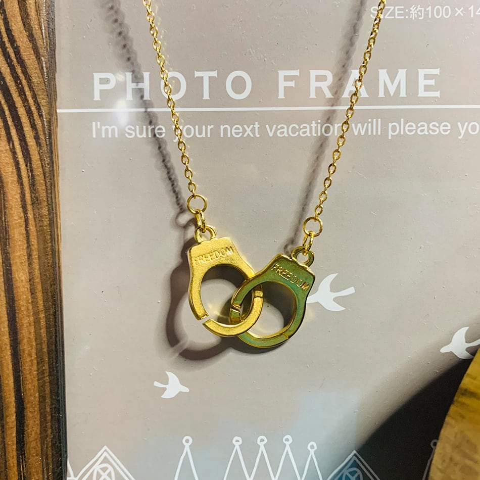 ステンレス手錠ダブルチェーンネックレス ゴールド ネックレス ステンレス 手錠 ハンドカフ シンプル 金属アレルギー対応 メンズ レディース ネックレス BTS FREEDOM