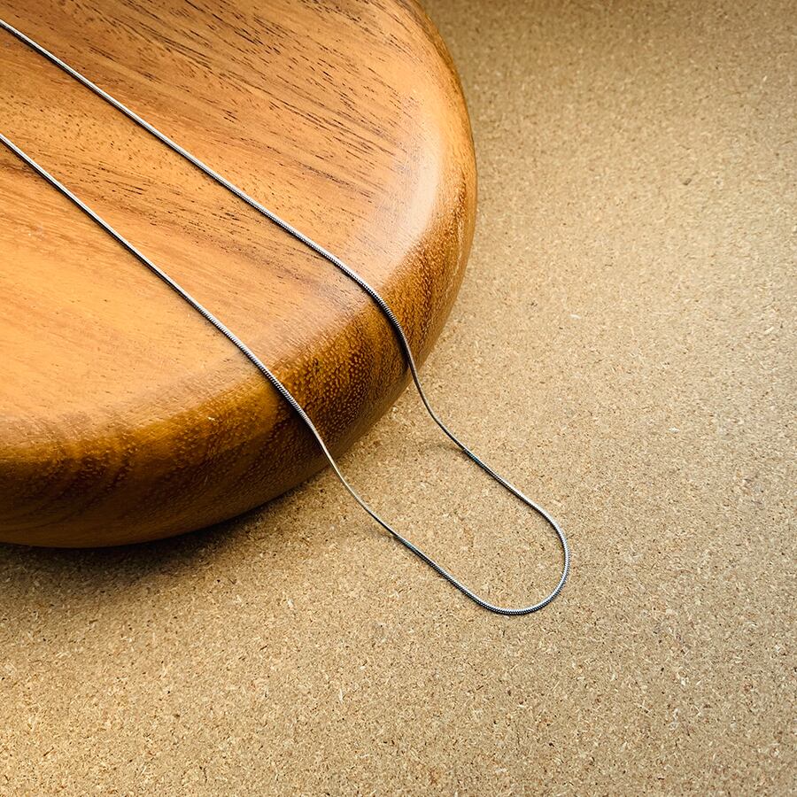 シンプルなスネークタイプのステンレス製のチェーン。 ペンダントトップを付けずにもチェーンだけでスタイリッシュに魅せてくれます。 やや細めのチェーンだから、さり気なくおしゃれ感を出したいときにおススメです。 メンズ・レディスかかわらずフィットする太さ。 素材:ステンレス サイズ:長さ約45cm、幅約0.9mm クラスプ:10x6.5x3.5mm 丸カン:5mm