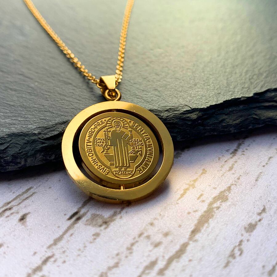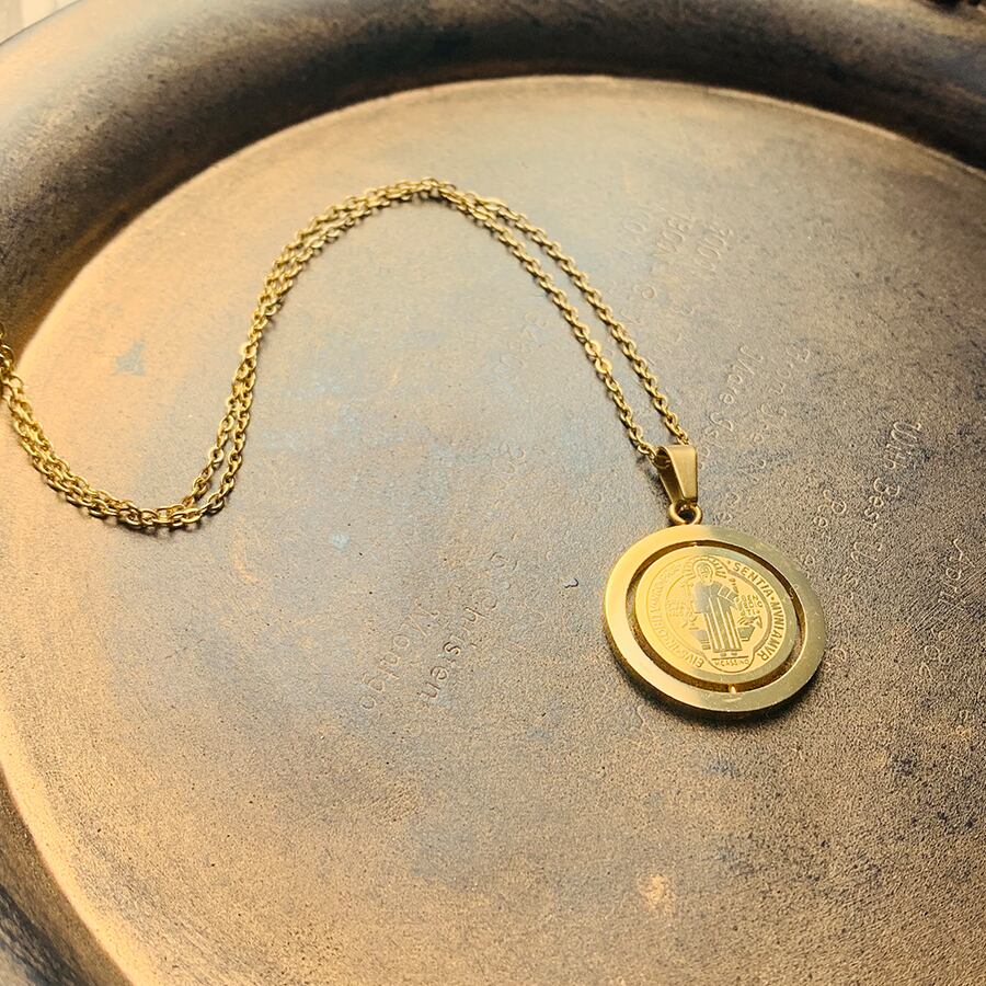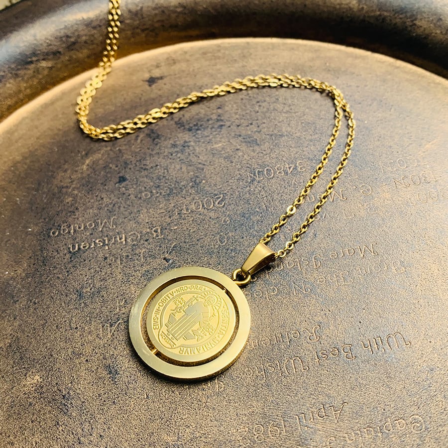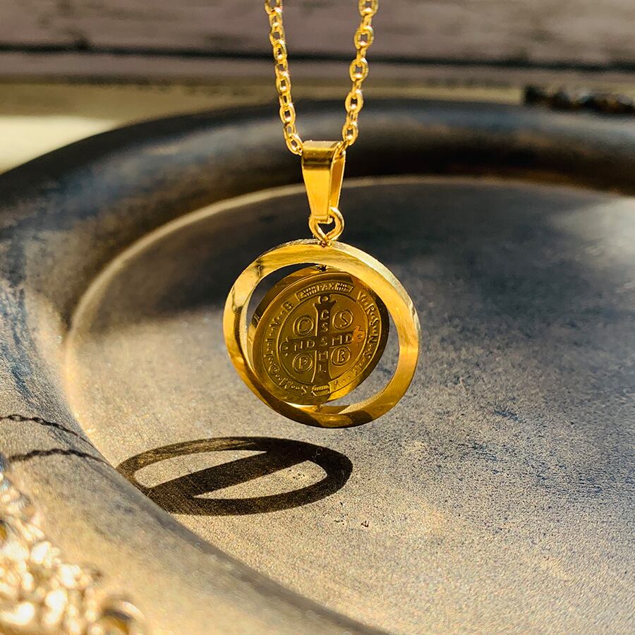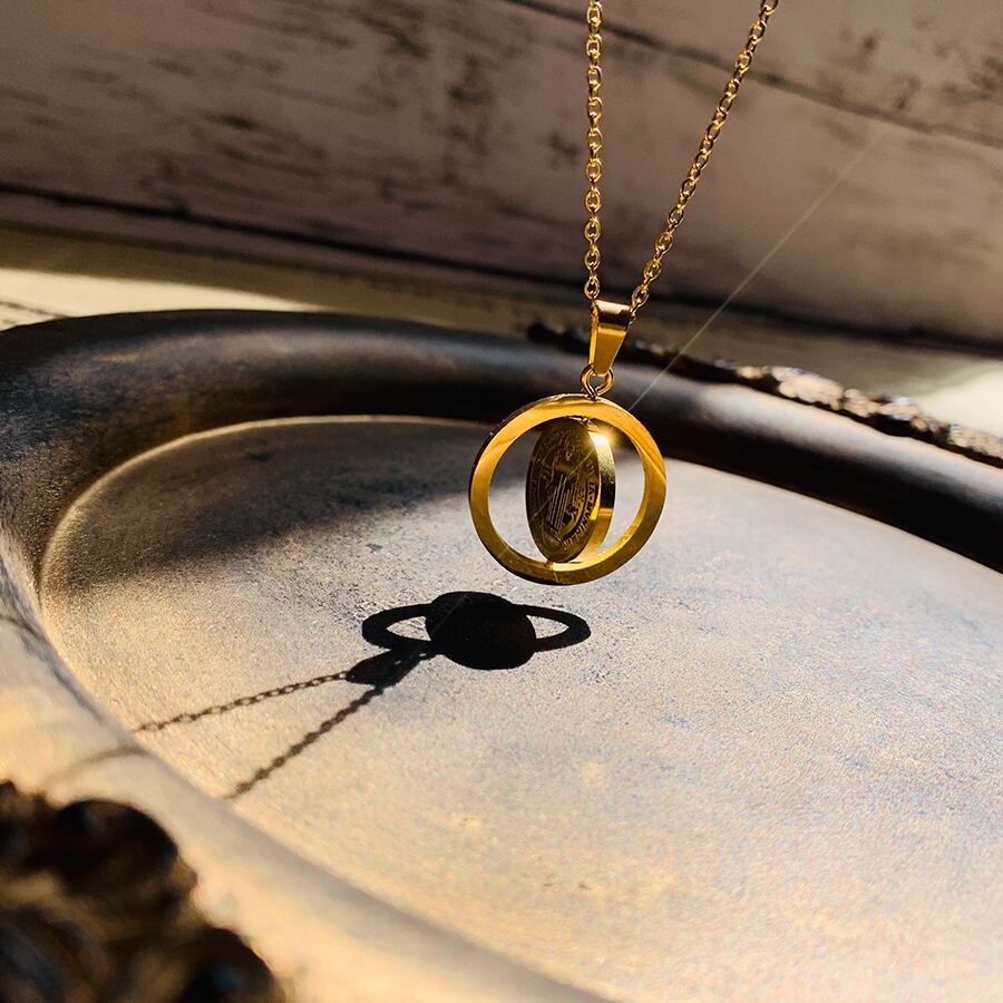 ゴールドコインの中心部分が横に回転する仕組みのネックレス!