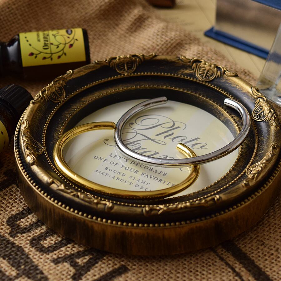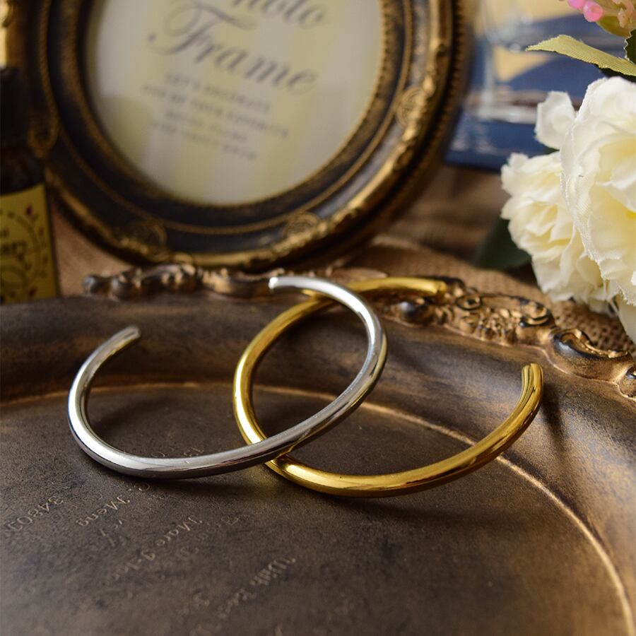 シンプルなデザインで丸いフォルムが特徴のステンレスバングル。