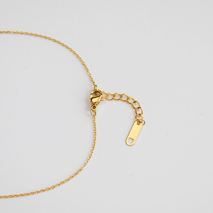 チェーンも細めのライトな着け心地。ペンダントトップもやや薄くて小振りなので、目立ちすぎずさり気ないオシャレが楽しめます。