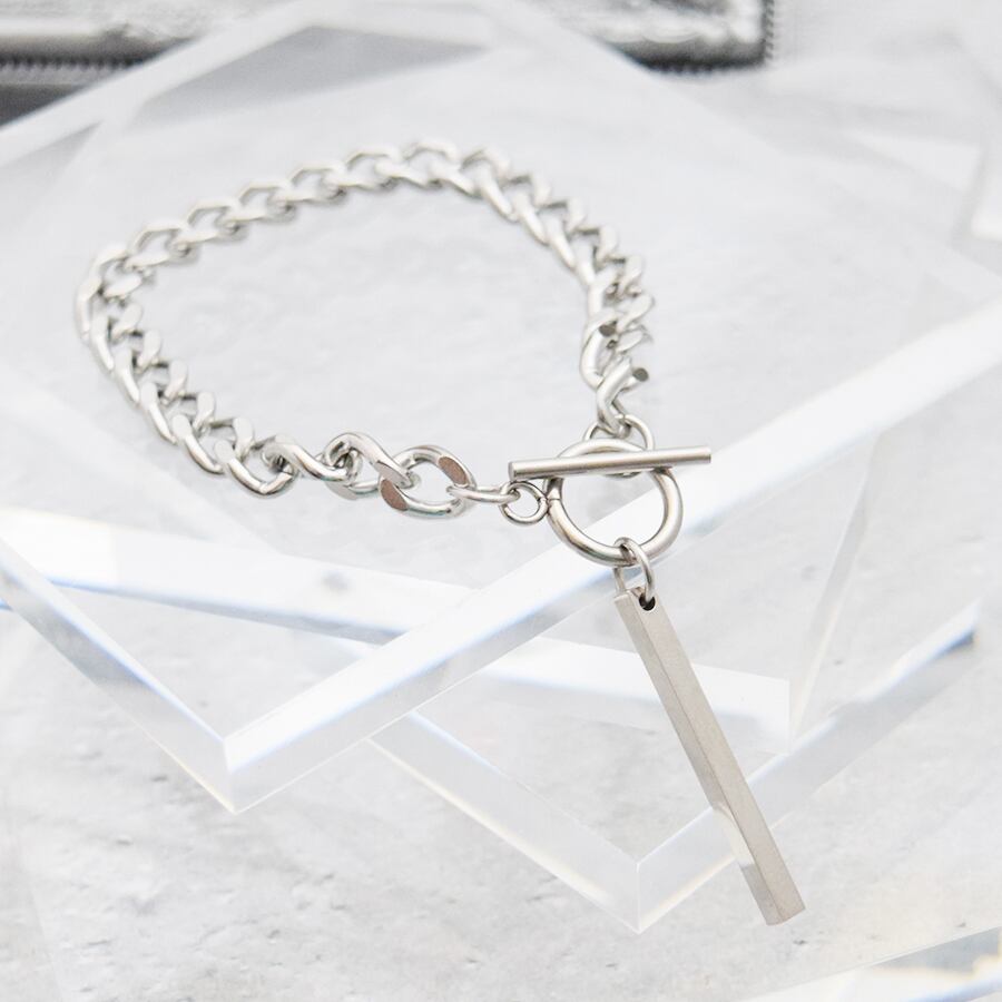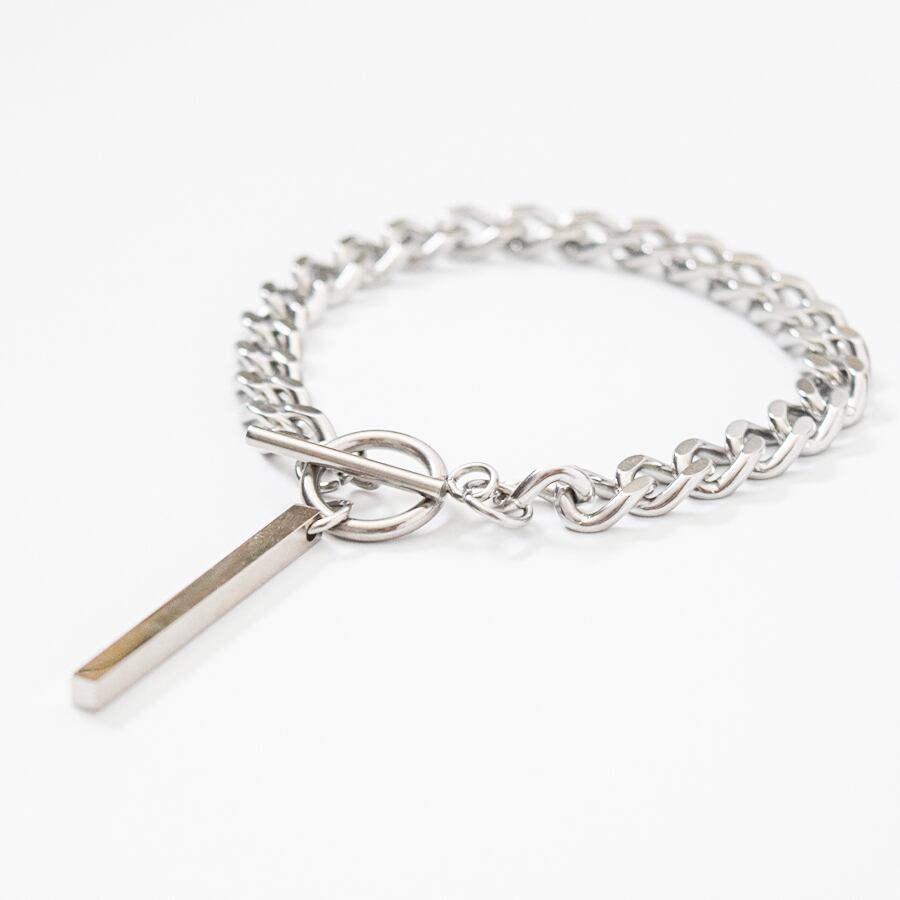 肉厚でシャープなスティックシルエットが印象深いモダン系ブレスレット。